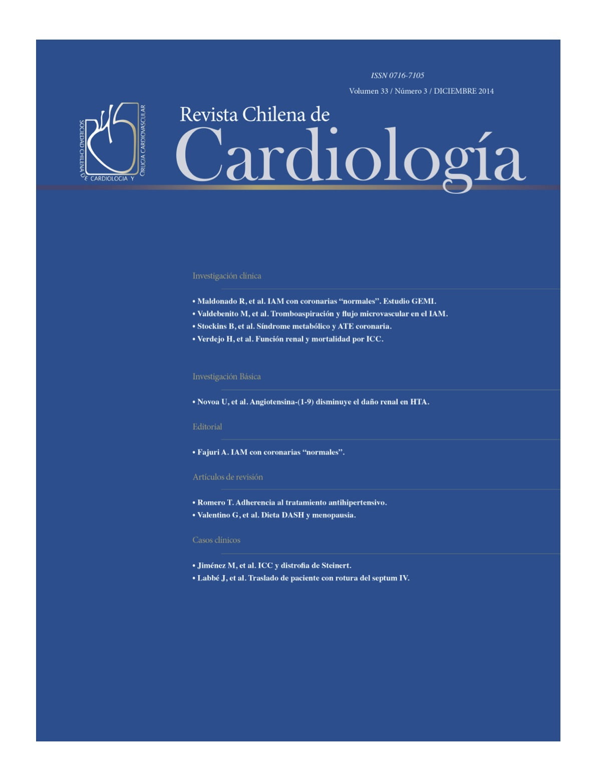 Revista Chilena de Cardiología – Volumen 33 / Número 3 / Diciembre 2014