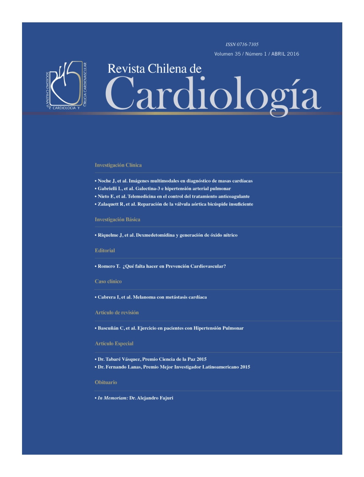 Revista Chilena de Cardiología – Volumen 35 / Número 1 / Abril 2016