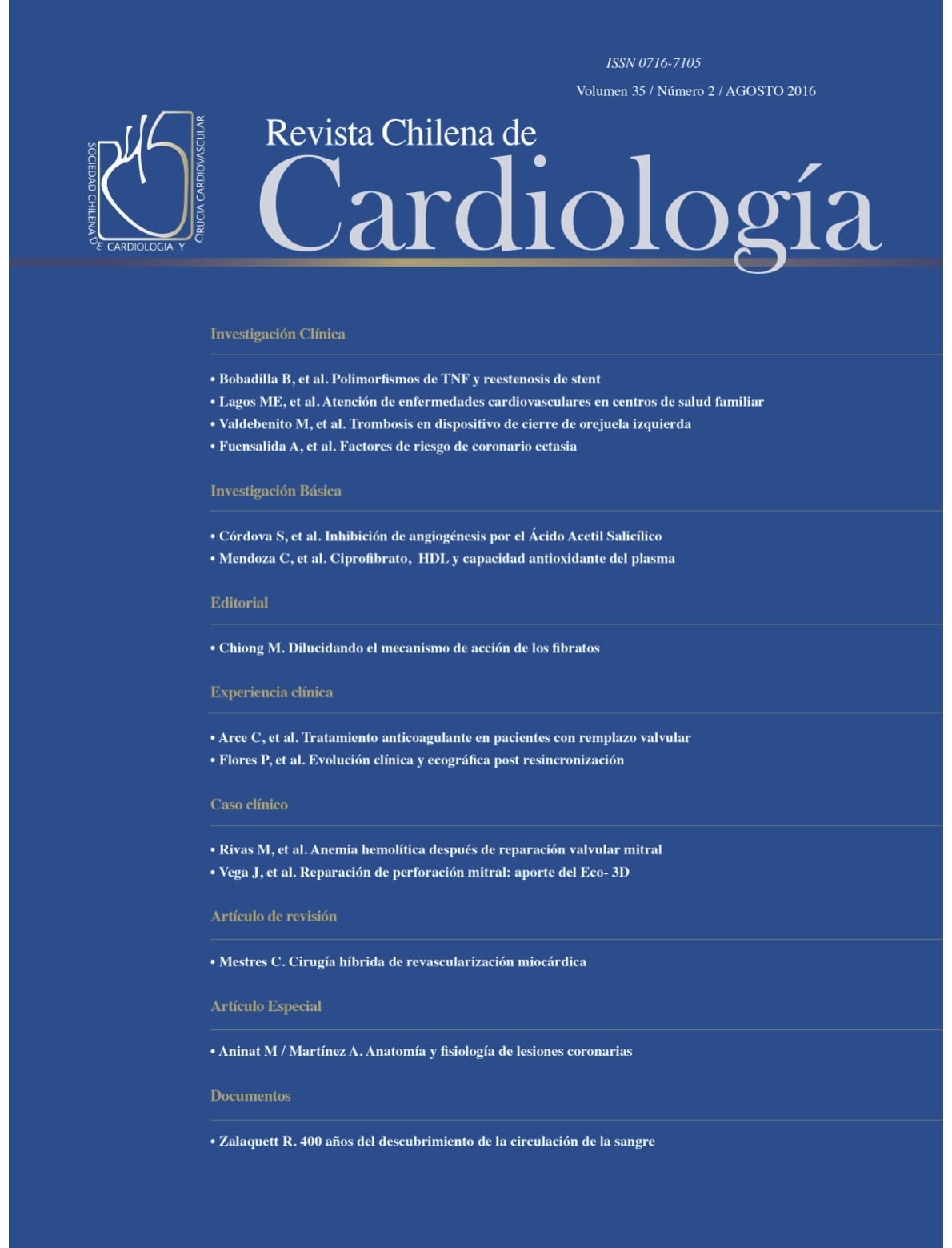 Revista Chilena de Cardiología – Volumen 35 / Número 2 / Agosto 2016