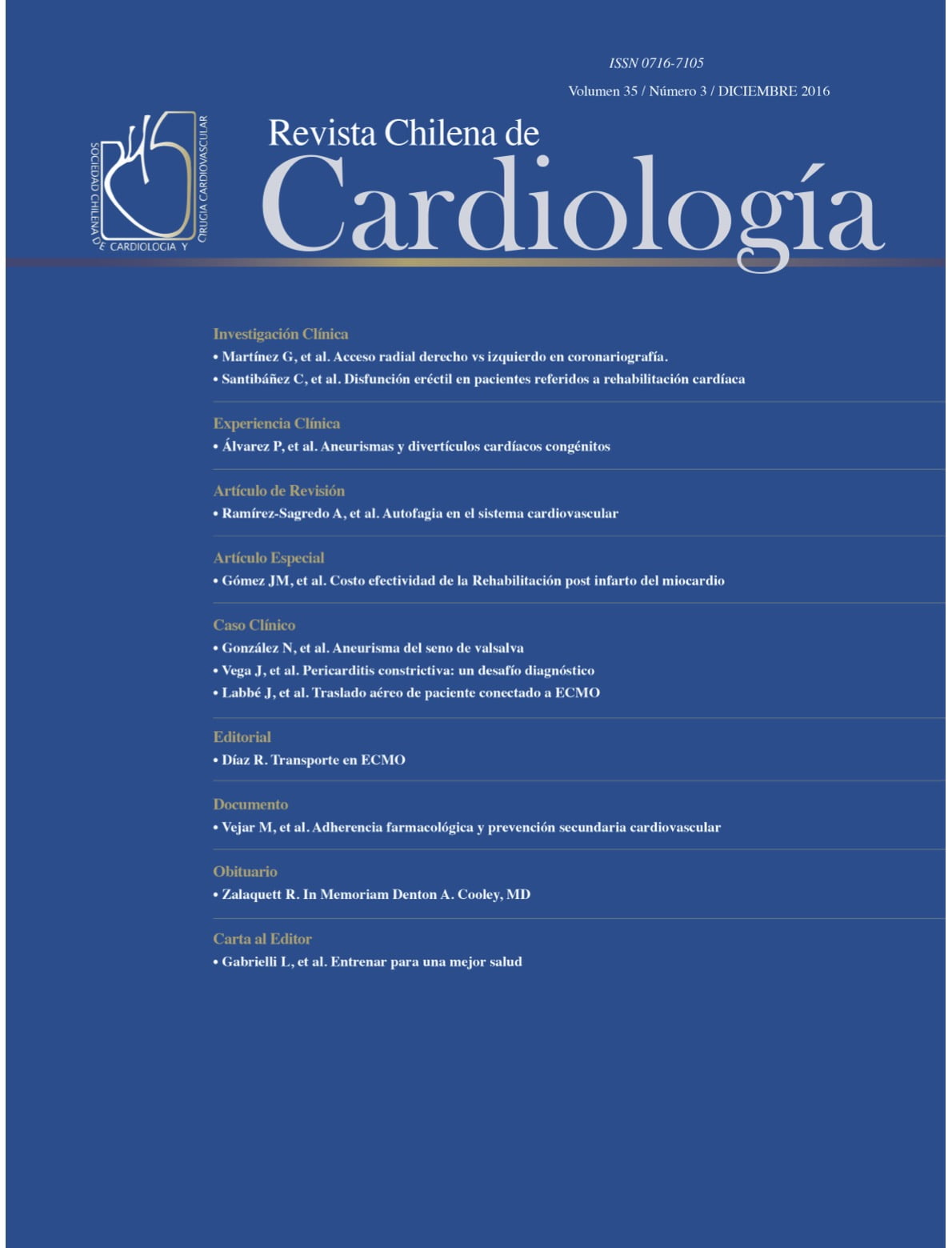 Revista Chilena de Cardiología – Volumen 35 / Número 3 / Diciembre 2016
