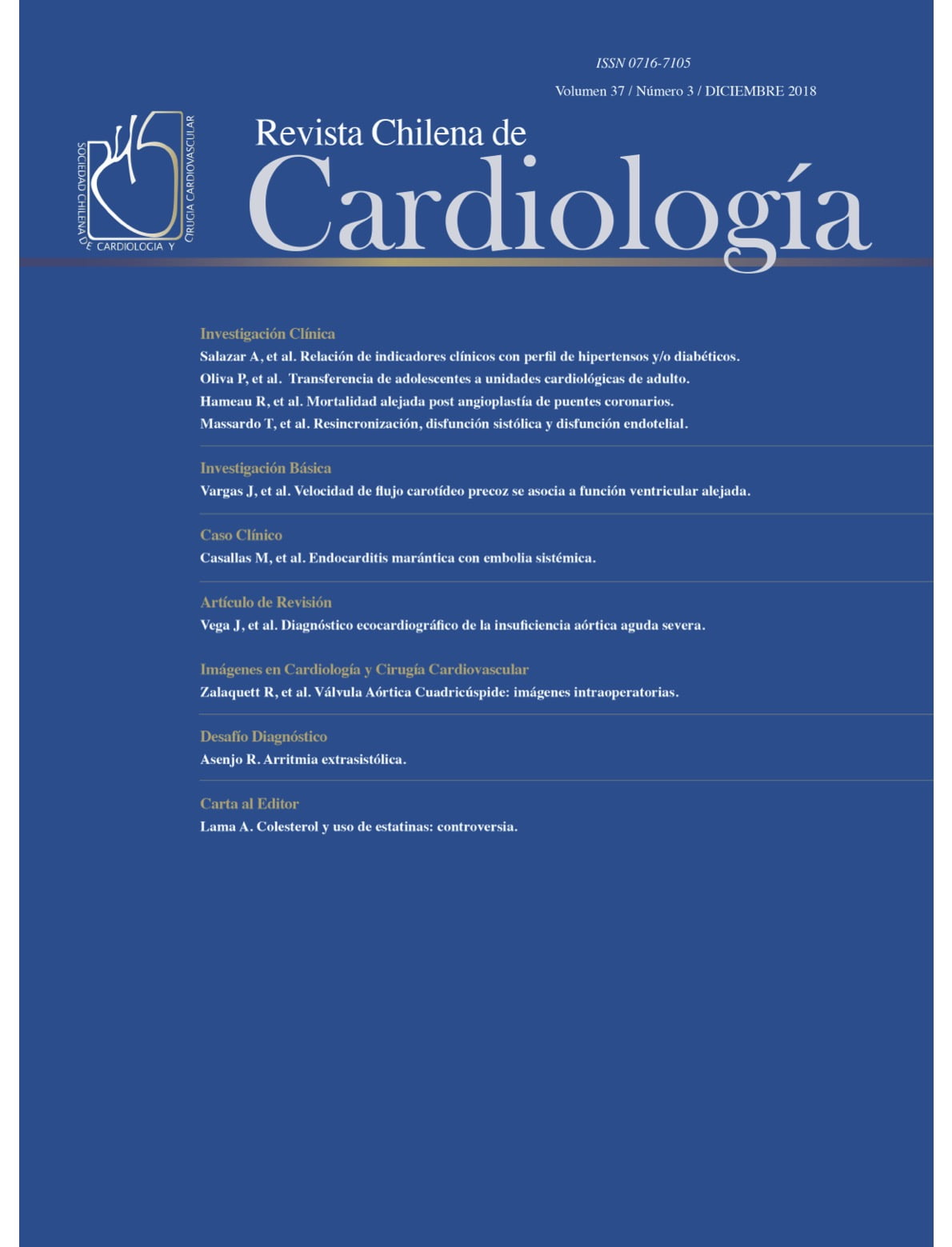 Revista Chilena de Cardiología – Volumen 37 / Número 3 / Diciembre 2018