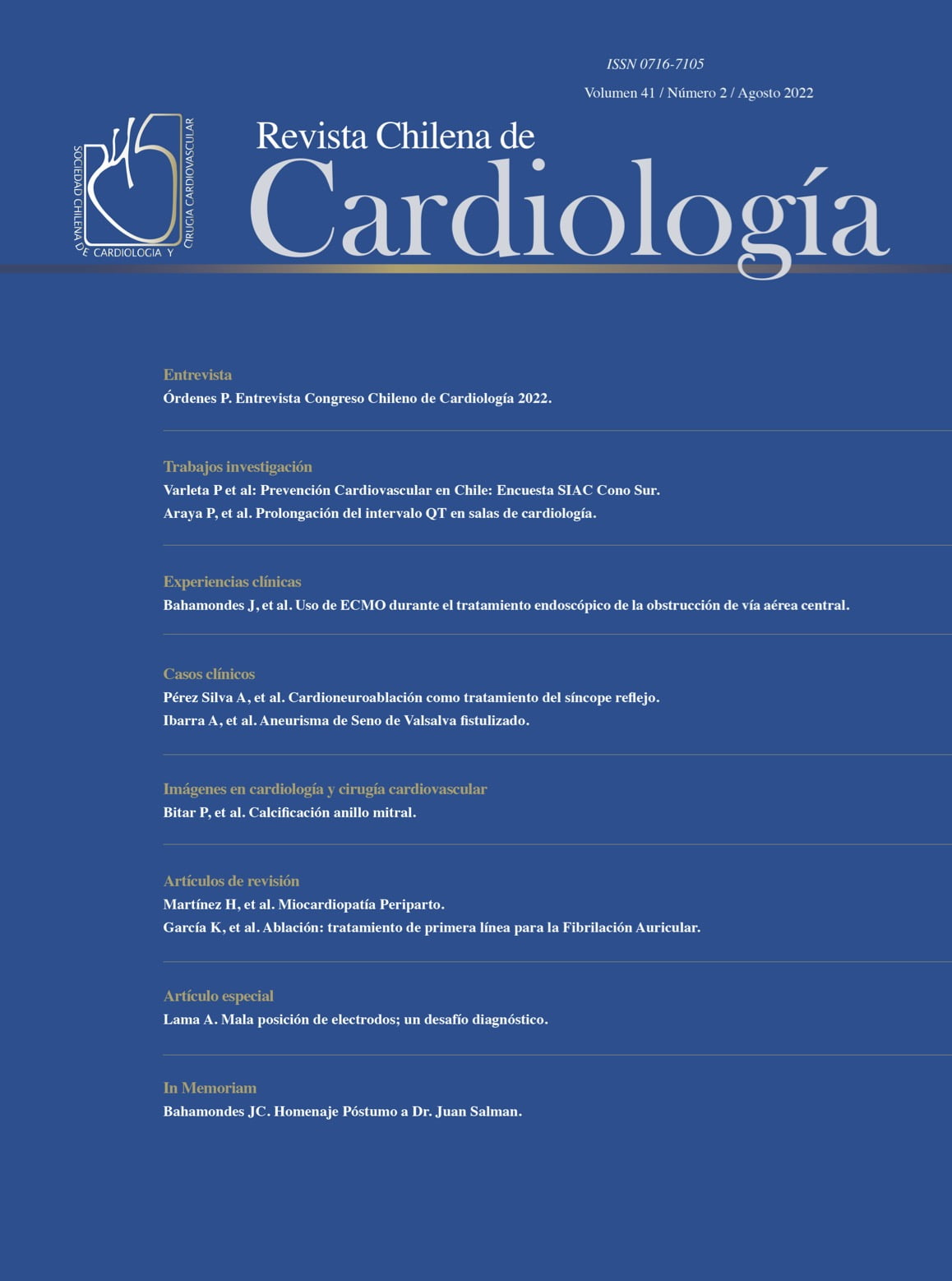 Revista Chilena de Cardiología – Volumen 41 / Número 2 / Agosto 2022