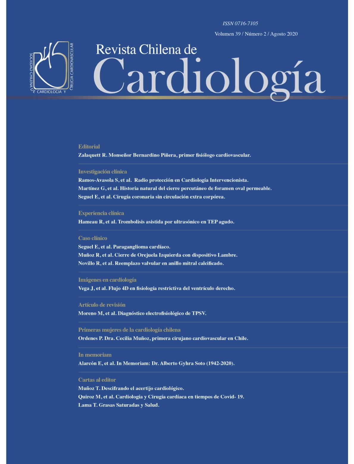 Revista Chilena de Cardiología – Volumen 39 / Número 2 / Agosto 2020